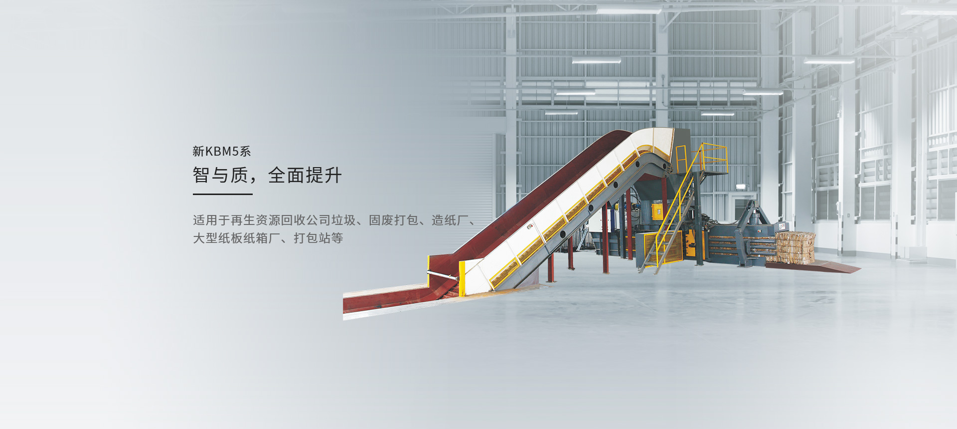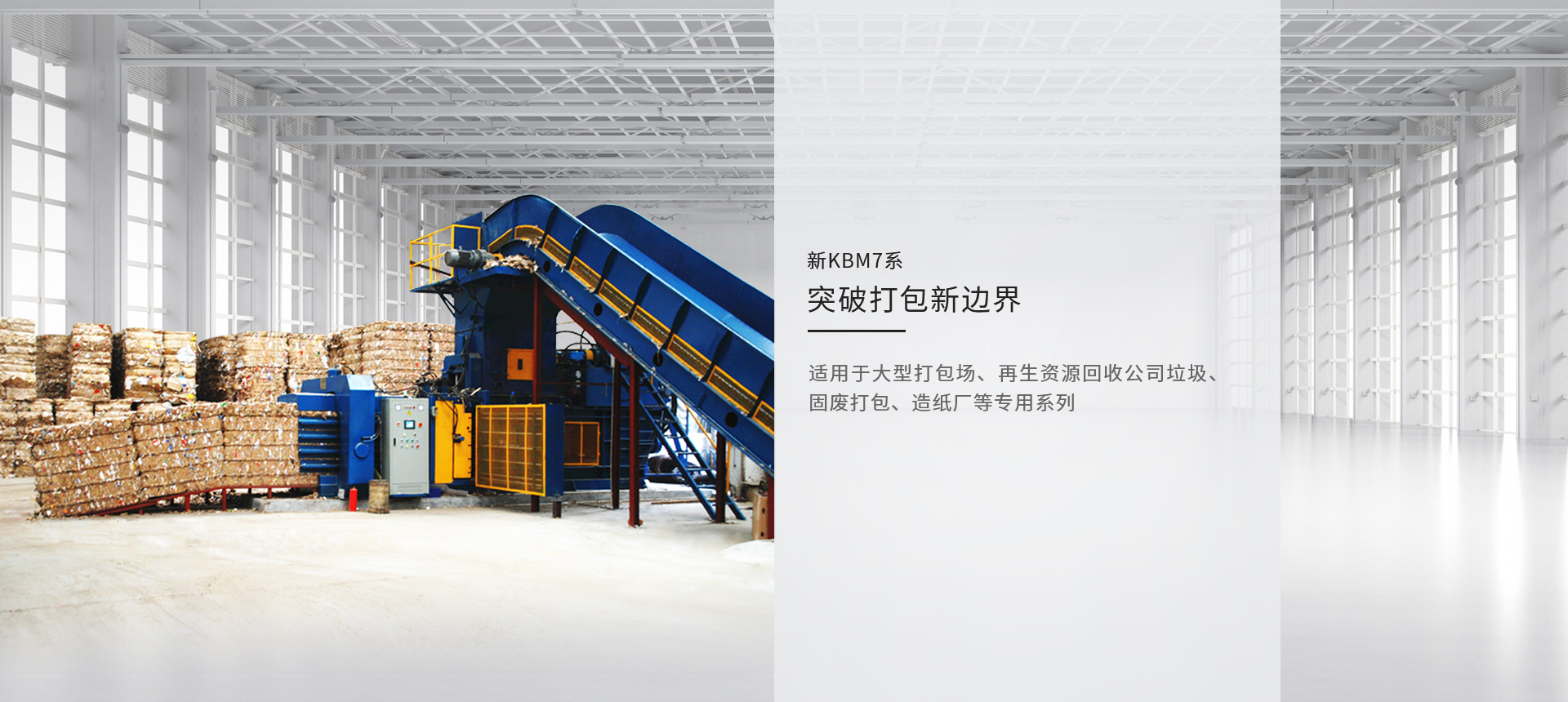 KBM為造紙、紙板紙箱、包裝印刷、再生資源和大型商超5大領域客戶提供智能高效、有競爭力的回收打包設備,以及廢料物料輸送、收集、除塵、分揀等解決方案與服務。與生態伙伴開放合作,堅持圍繞客戶需求創新以及加大研發投入超越性的創新,持續為客戶創造價值,助力環保產業升級,促進社會可持續發展。